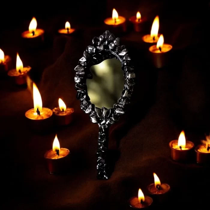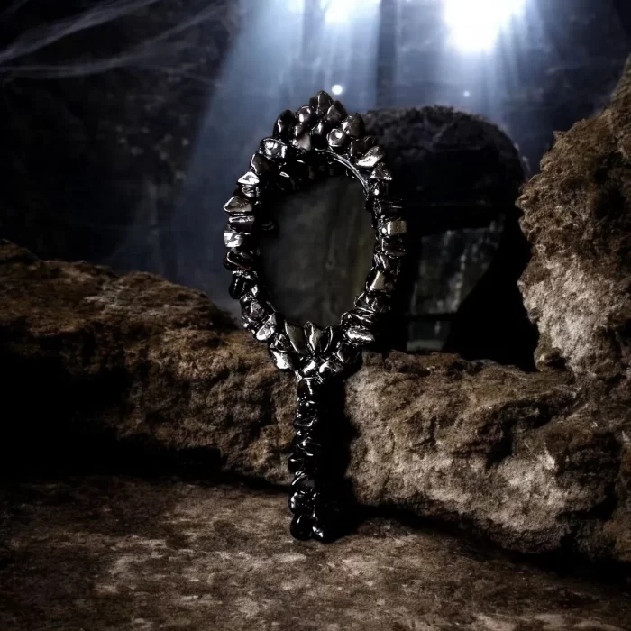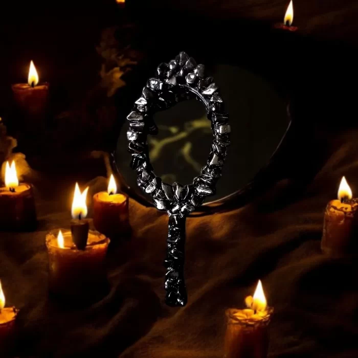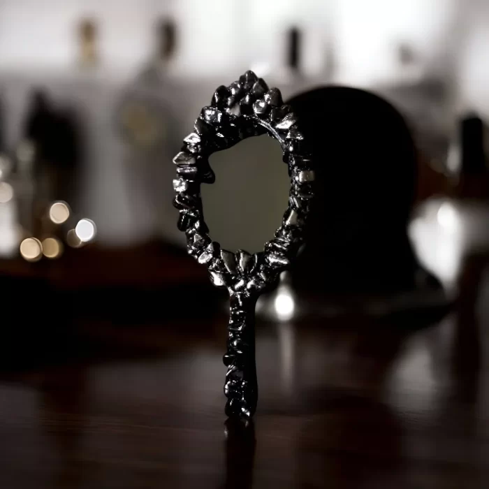 Espelho negro de mão para vidência.