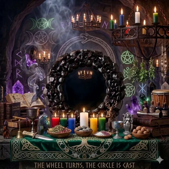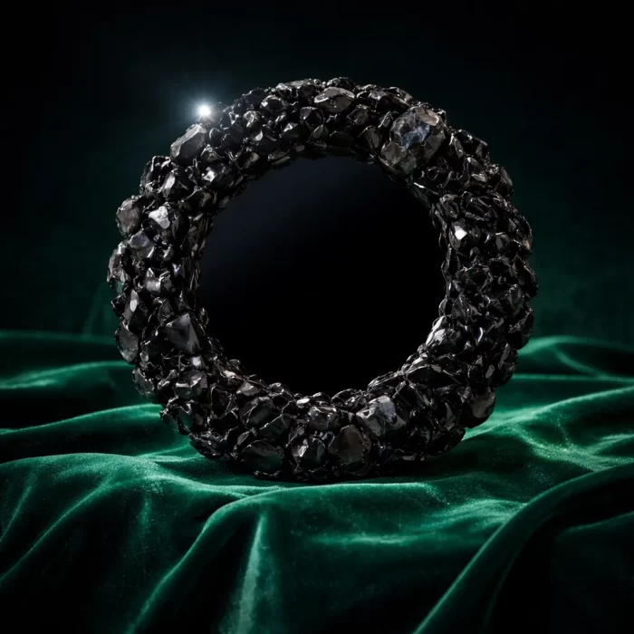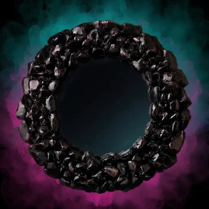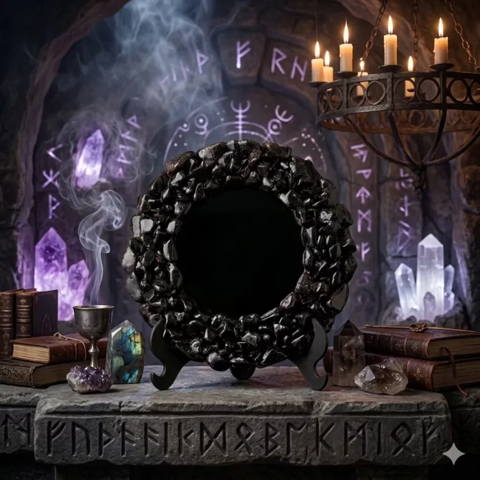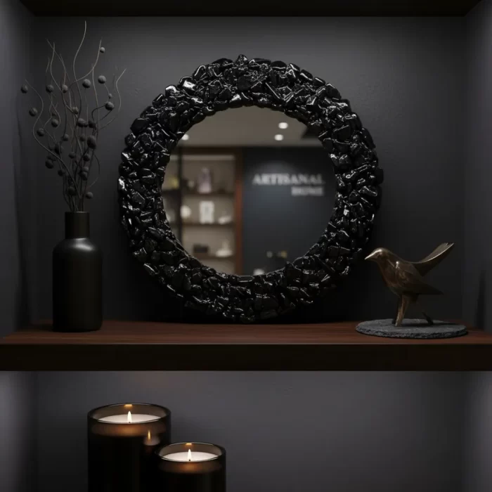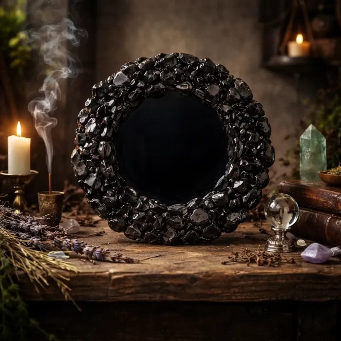 Espelho negro indicado para vidência. com moldura em pedras naturais turmalina negra.